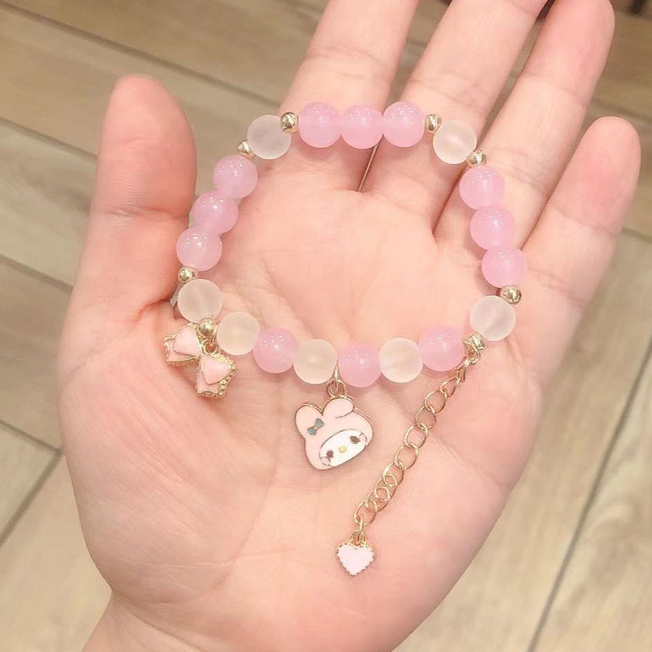 Aksesoris Fashion > Gelang Tangan & Bangle > Gelang Manik-Manik Warna-Warni Karakter Kartun Sanrio Sederhana Baru Untuk Wanita Gadis Unicorn Kuromi Gajah Glasir Perhiasan