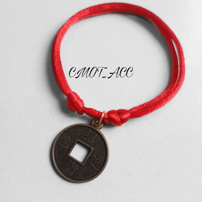 Jenis Tali : Red Satin Ukuran : 2mm Variasi Warna Tali : Merah / Hitam / Navy Harga : 4000/Gelang Grosir : 3500 (min pesanan 100-499/gelang) Liontin : Coin kuningan