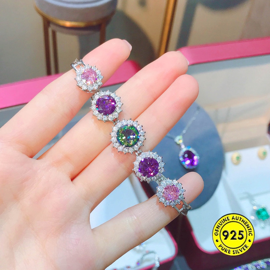 Detail Gelang Moissanite Delapan Hati Dan Delapan Panah Berlian Merah Muda Amethyst Permata Berwarna Gelang M1547