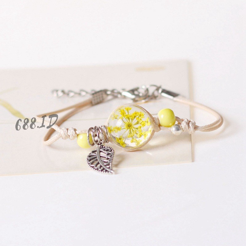Gelang Motif Bunga Daun Viral Bestie Bahan Tali Elegan Cantik Gaya Korea Fashion Kekinian Impor Murah GL 44