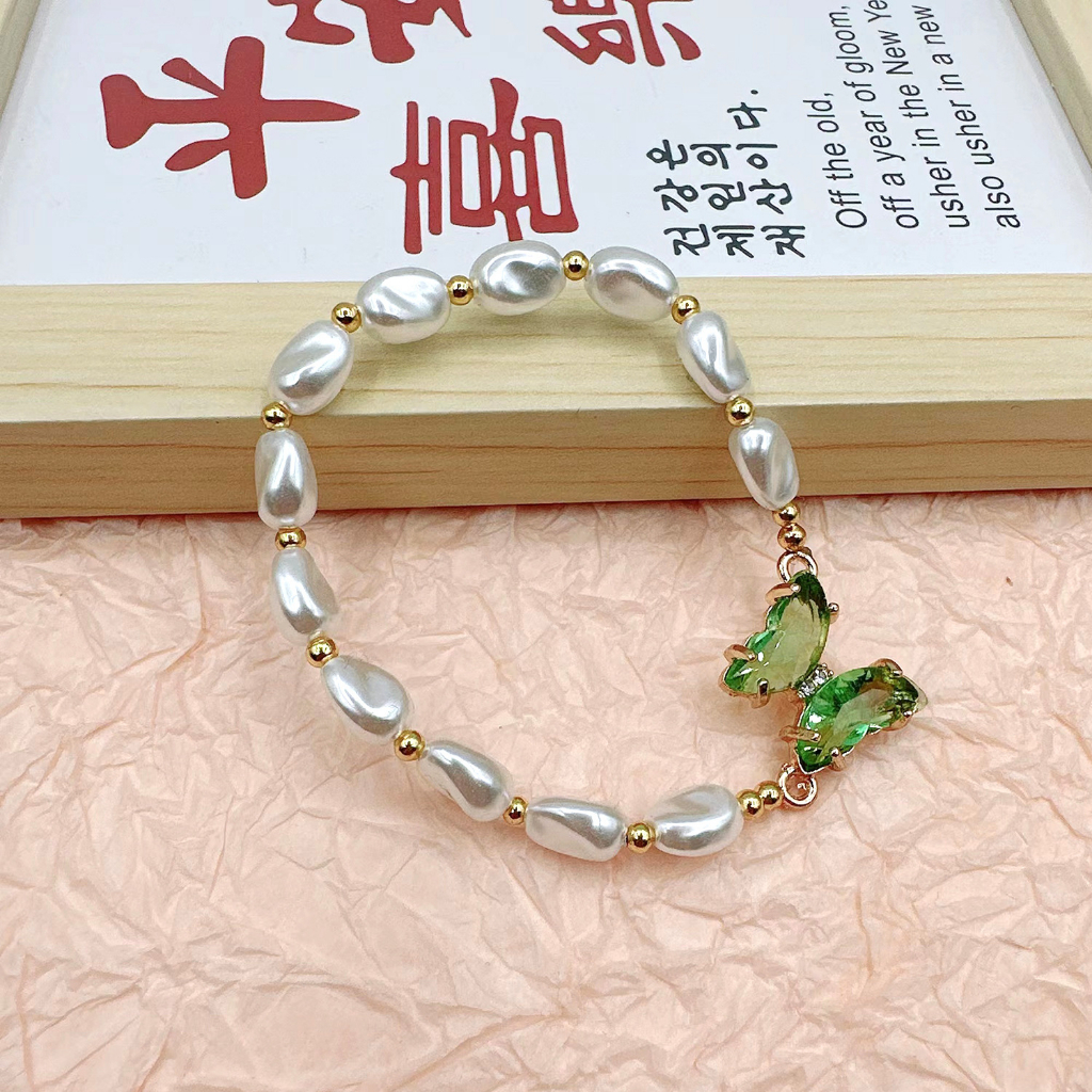 Detail Gelang Mutiara Tidak Teratur Prancis Gelang Liontin Kupu-Kupu Kristal Sederhana