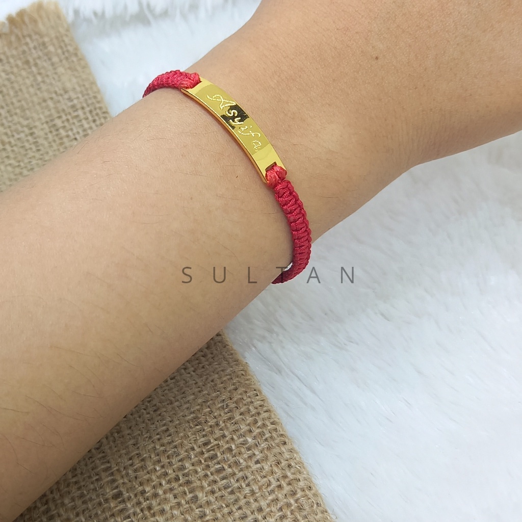 Gelang Tali Anak dan Dewasa Plat Ukir Nama Logam Kuningan Lapis Emas GT1
