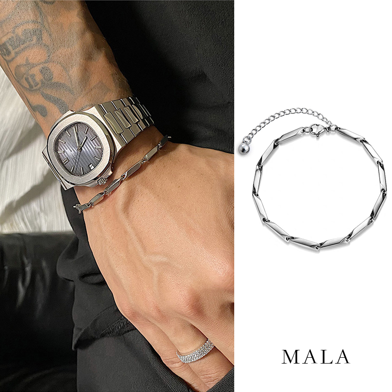 Merek: Perhiasan Mayebe Lavend Kategori produk: gelang Gaya: Sederhana Berlaku: Unisex Bahan produk: baja titanium Warna: Perak Panjang Rantai: 17cm Rantai ekstensi: 5cm Rantai ekstensi: 5cm Berat produk: 17g Daftar Produk: 1 × Gelang