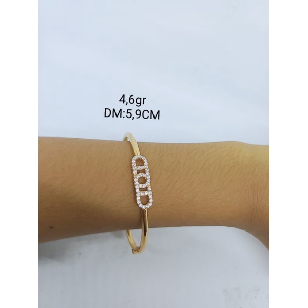 Fashion Bayi & Anak > Perhiasan > Gelang > GELANG PERAK ASLI 925 LAPIS EMAS/GELANG BANGLE PAPERCLIP MATA PUTIH/GELANG ASLI SILVER/GELANG FASHION WANITA