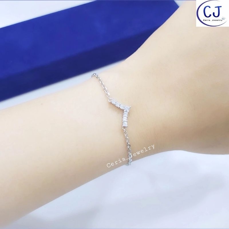 Gelang Tangan Wanita Model Korea Permata Aurel perak asli 925 lapis emas putih