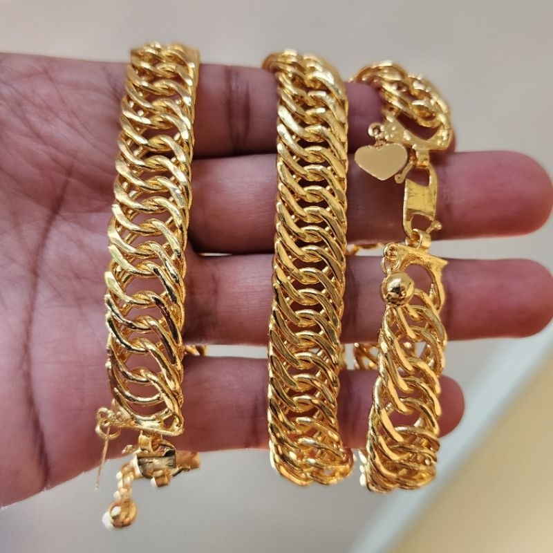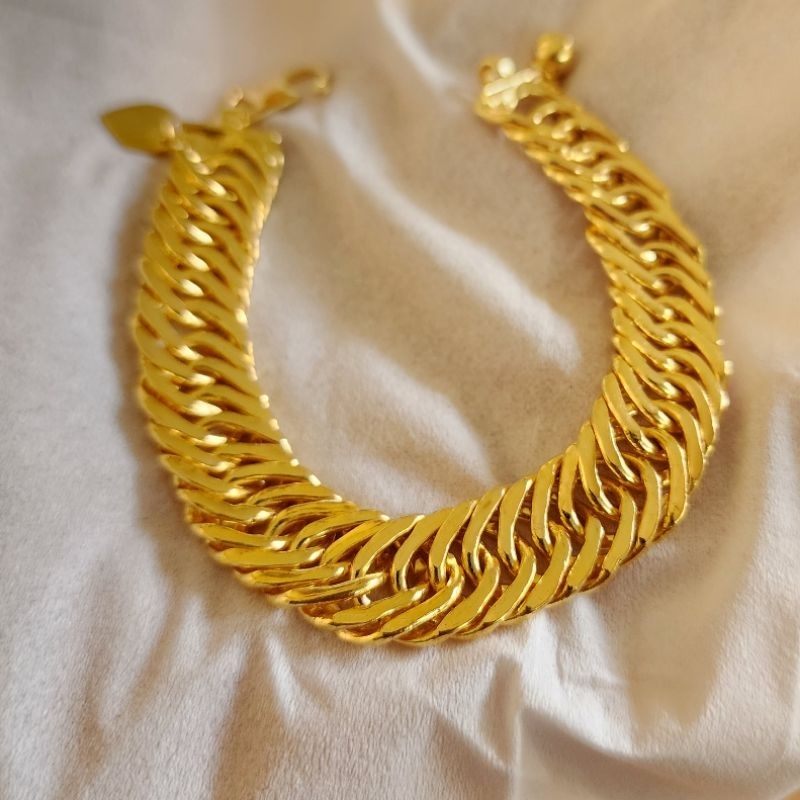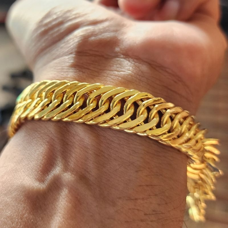 Detail Gelang Rantai Double Besar Lapisan Emas 24k Lebar 13mm