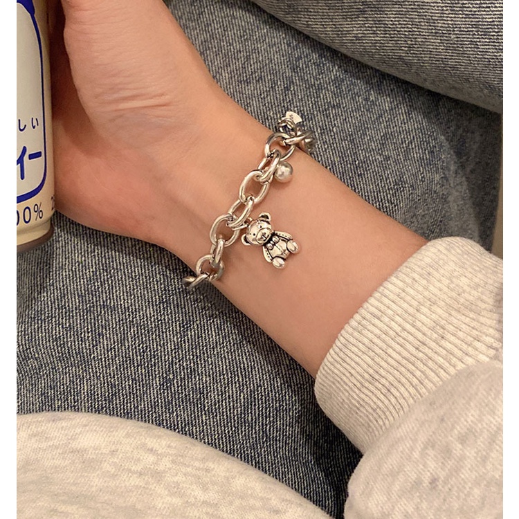 Detail Gelang Rantai Liontin Beruang Bahan Alloy Gaya Korea Untuk Wanita
