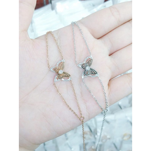 gelang rantai permata kupu titanium anti karat anti lunturgelang rantai permata kupu titanium anti karat anti luntur