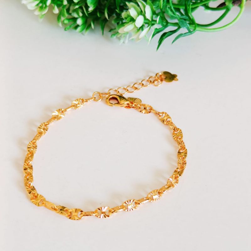 GELANG RANTAI/RANTE TITANIUM LAPIS EMAS KAMI TIDAK MUDAH LUNTUR DAN ANTI KARAT DI BUAT DARI BAHAN YG BERKWALITAS SEHINGGA TIDAK MEMBUAT ALERGI DI TANGAN. DENGAN BERBAGAI MOTIF DAN VARIASI MODEL KEKINIAN TAMPIL LEBIH ELEGEN BILA DIPAKAI. COCOK UNTUK KESEHARIAN MAUPUN PESTA.