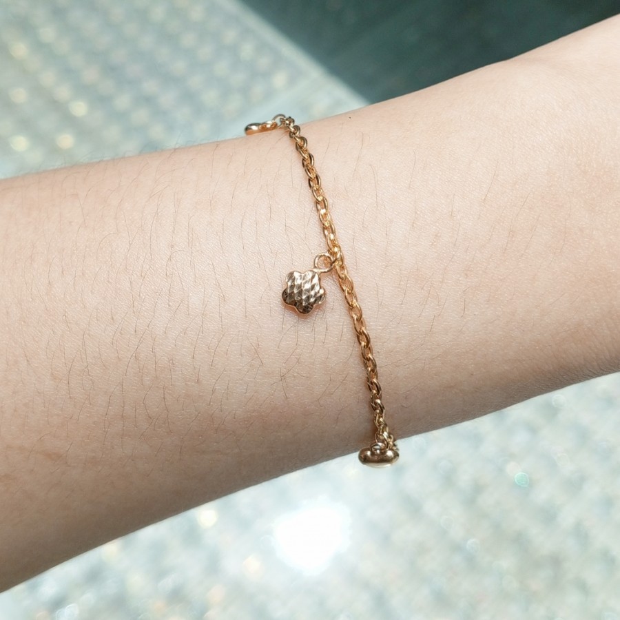 Gelang Rantai Wanita Emas Kuning Bell + Mainan Fashion 16k 70% ( RG67 ) Berat: 2.5 gr (untuk berat gram yg lebih akurat harap chat kami) Kadar: 70%