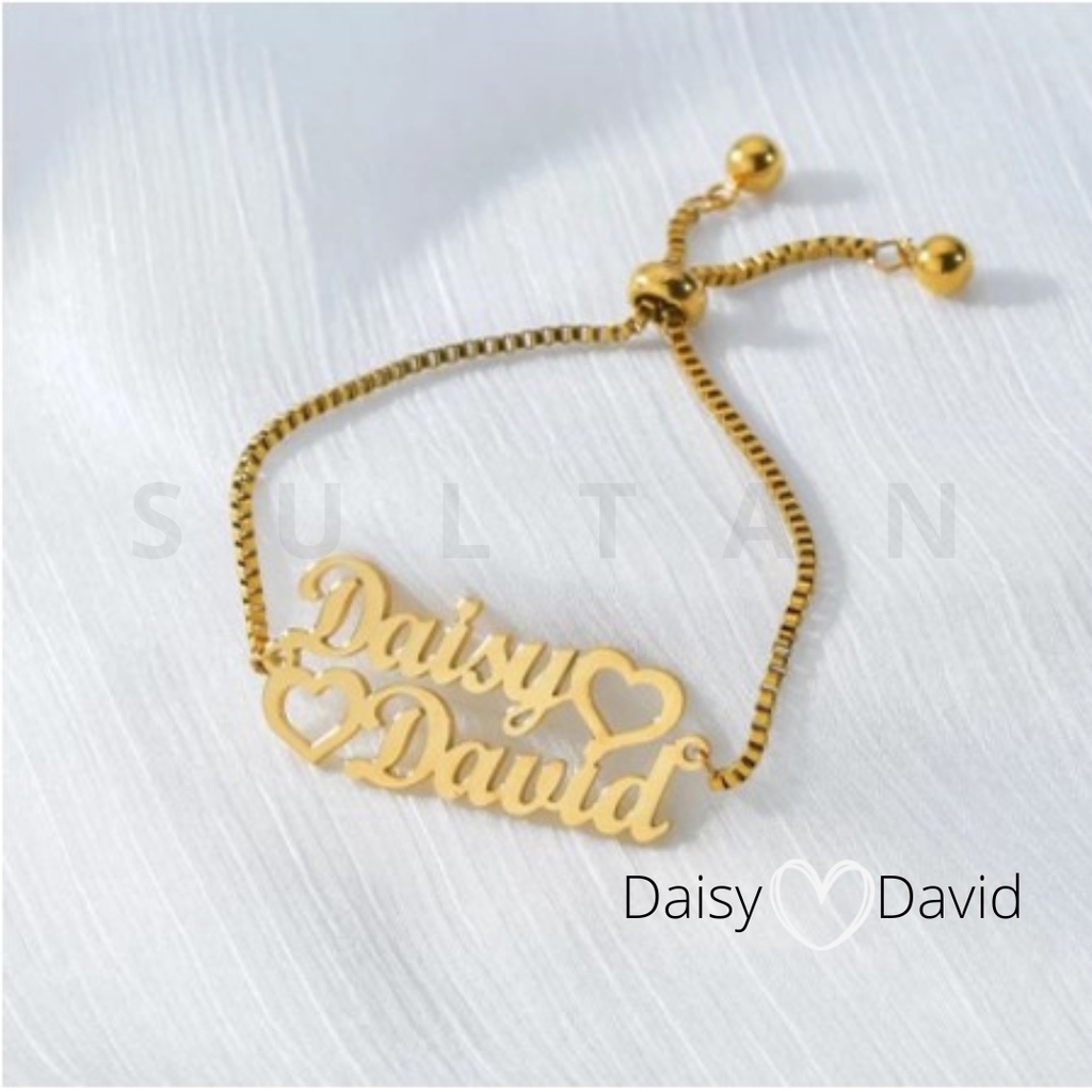 Gelang Serut Custom Nama Titanium Anti Karat Personalized Name Slider Adjustable Bracelet Customized