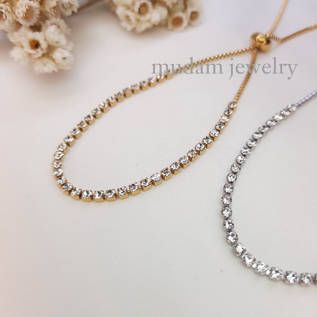 Detail Gelang Serut Diamonds Baris Elegan dan Sederhana Tersedia Warna Gold dan Silver