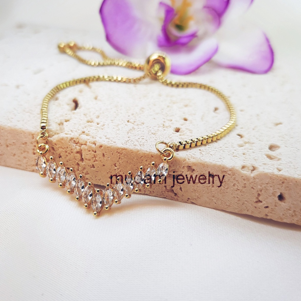 Detail Gelang Serut Model V Barisan Diamonds Artifisial