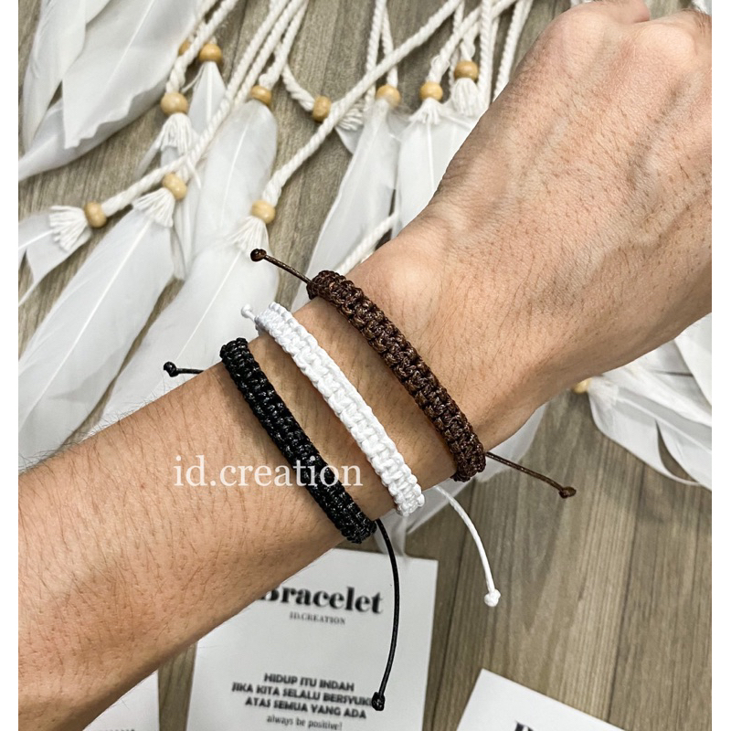 Detail Gelang Tali Anyam Polos Tali Korea 1mm Kepang Anyam Hitam Coklat Putih Biru Orange
