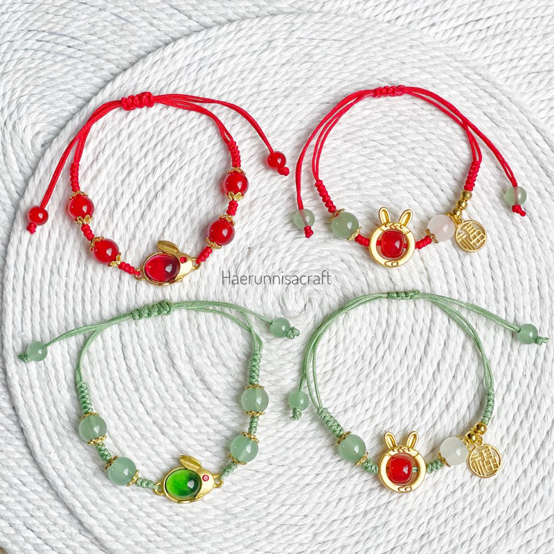 Gelang Tali Kepang Design Liontin Kelinci Batu giok Keberuntungan . size gelang 14cm-20cm (bisa disesuaikan) bisa untuk pergelangan 14cm - 20cm . warna merah dan hijau mint