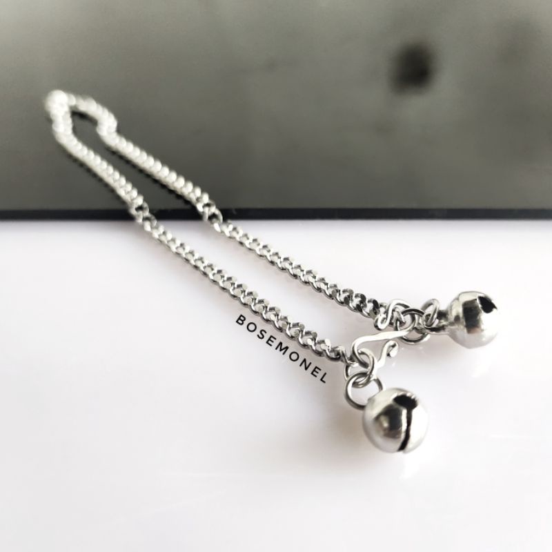 Detail Gelang Tangan, Gelang Kaki Monel Model Keroncong/Kerincing Rantai Halus 2 Bel