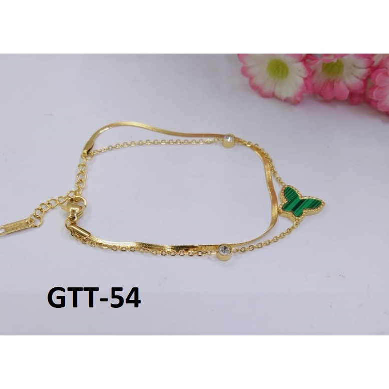GELANG TANGAN KAKI TITANIUM EMAS GOLD KUPU HIJAU GREEN TERMURAH