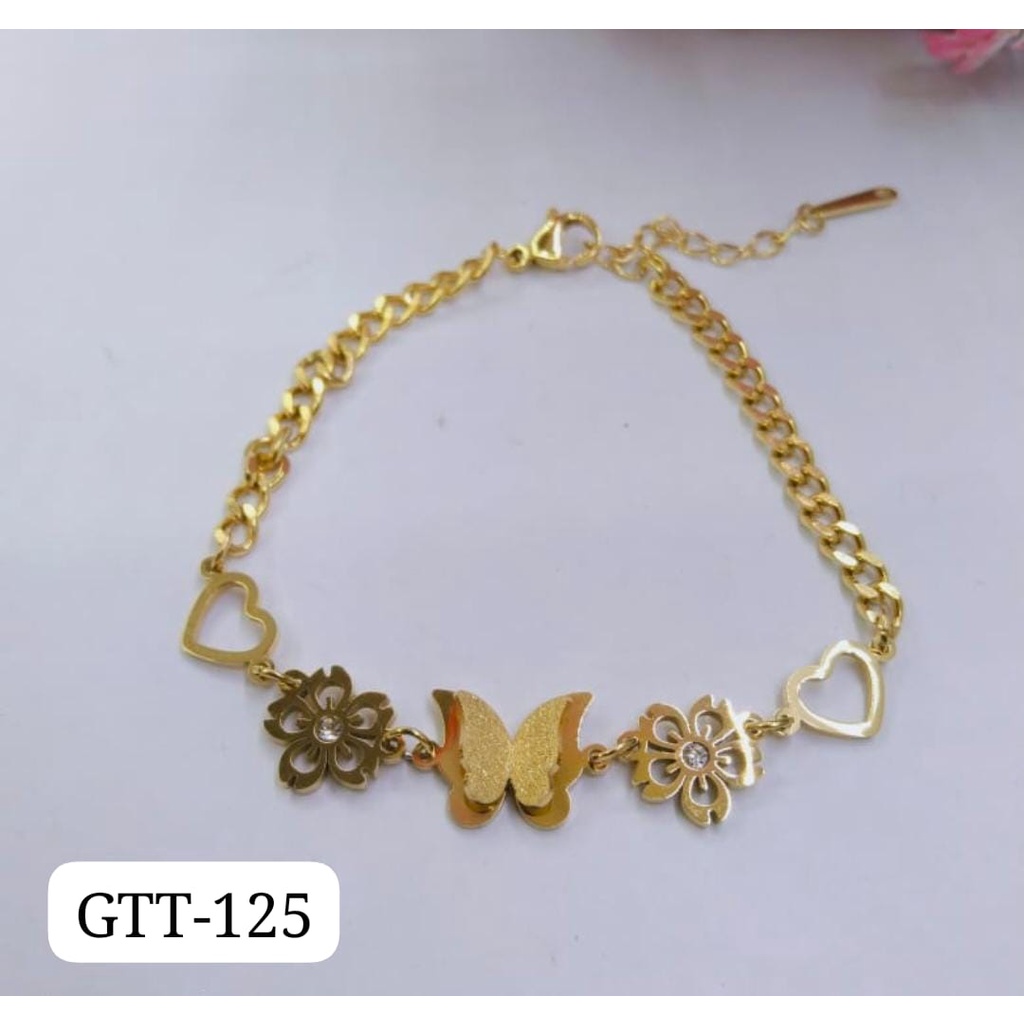 GELANG TANGAN KAKI TITANIUM EMAS GOLD MOTIF BUNGA HATI KUPU DIAM