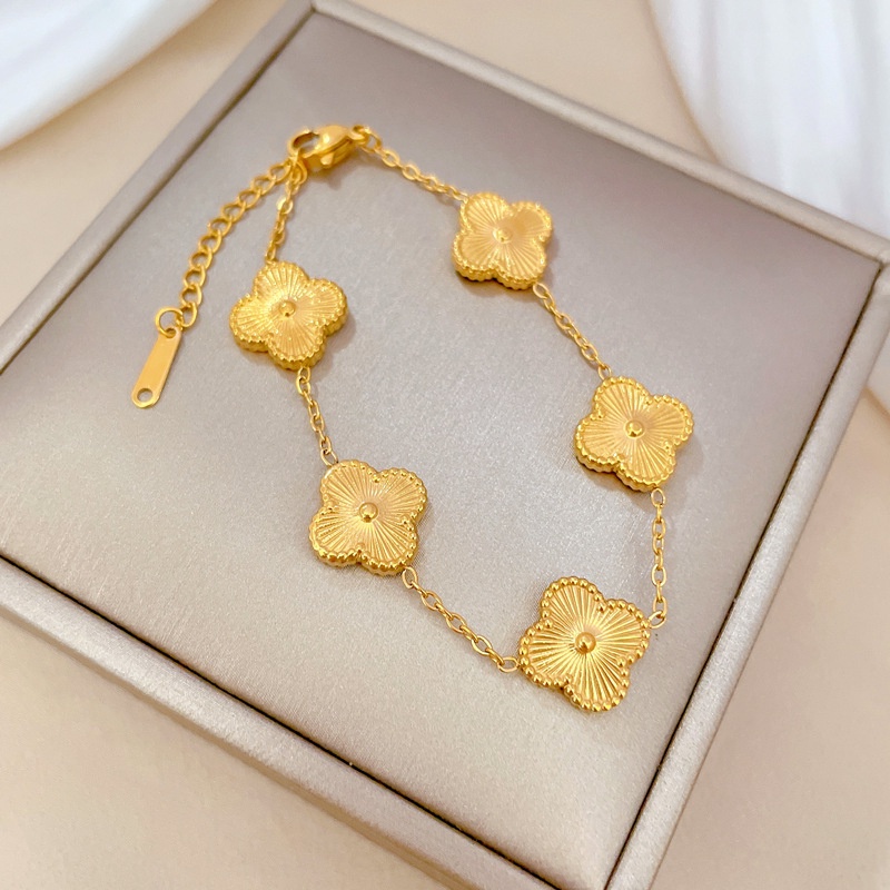 Gelang tangan lima clover gold bangle titanium stainless steel 316L import anti karat harga grosir bisa bayar di tempat