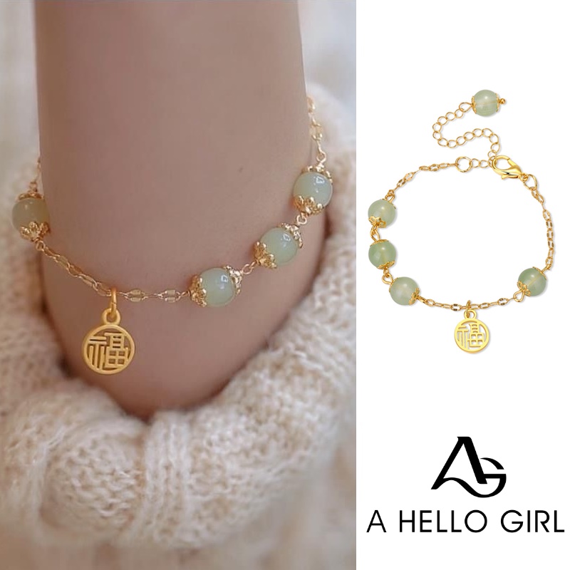 Detail Gelang Tangan Pasangan / Pria / Wanita Manik Batu Hetian Alami Gaya Retro