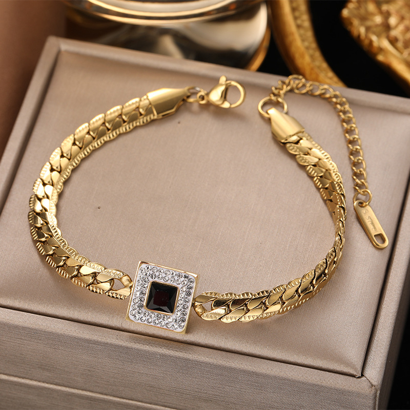 Detail Gelang tangan sisik squarina zircon hijau titanium anti karat harga grosir bisa cod