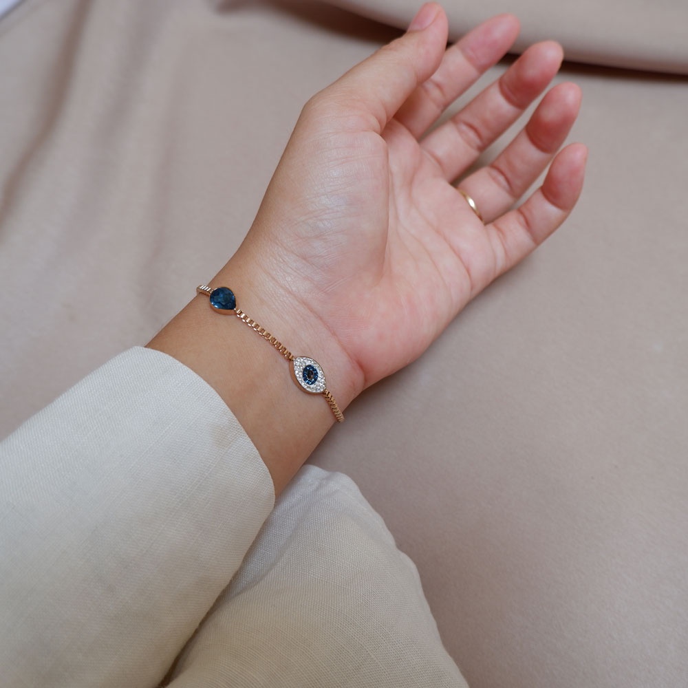 Detail Gelang Tangan Stainless Wanita Bracelet Blue Diamond