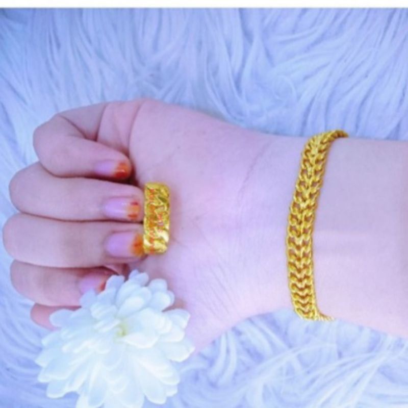 Detail Gelang Tangan TITANIUM Rantai Tikar free cincin Coin logam asli viral Tidak karat Tidak Luntur