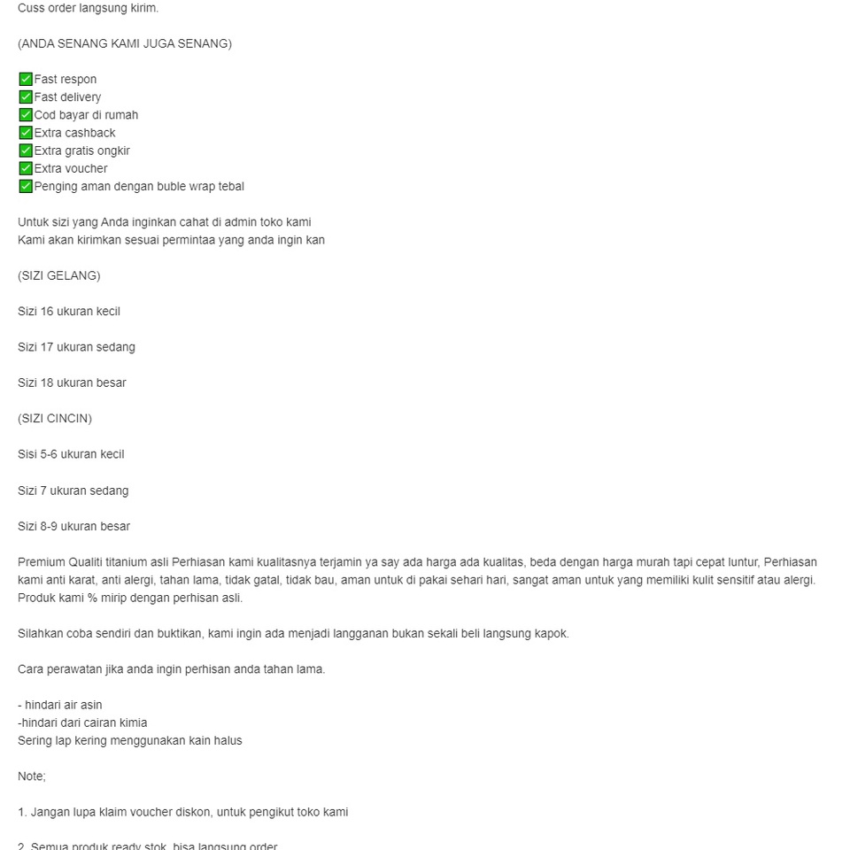 barang ready stok bahan titanium import anti luntur anti karat