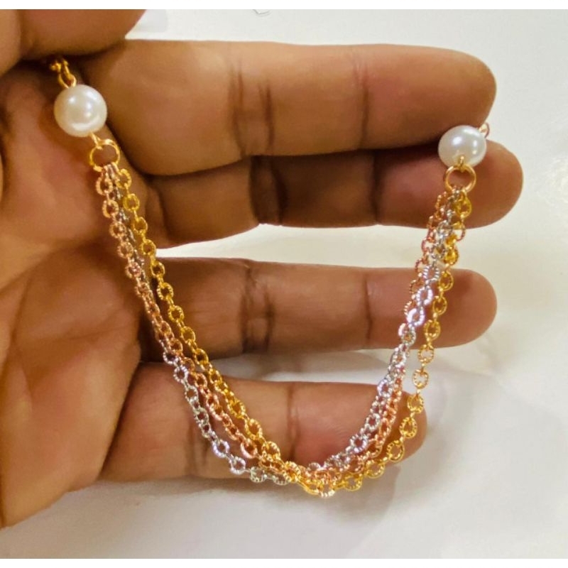 >> Daya tahan lebih lama dibandingkan perhiasan imitasi yang tidak berlapis emas. Warna dan kilaunya bertahan hingga lebih dari 2tahun pada pemakaian yang terawat (tidak sering terkena cairan kimia seperti : parfum, alkohol, body lotion, air asam / keringat berlebihan).