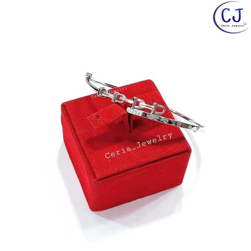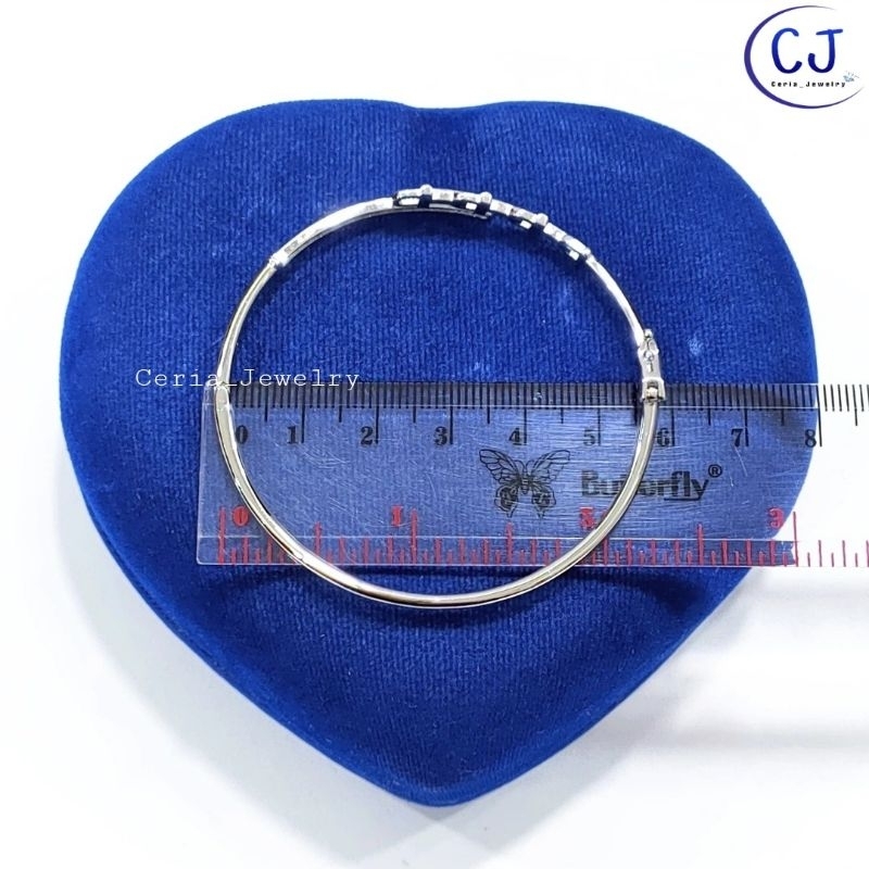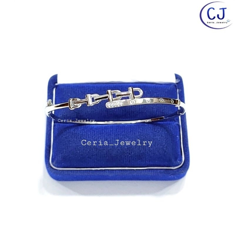 Gelang model Bangle Bulat Permata variasi Cartir Gesper perak asli 925 lapis emas putih