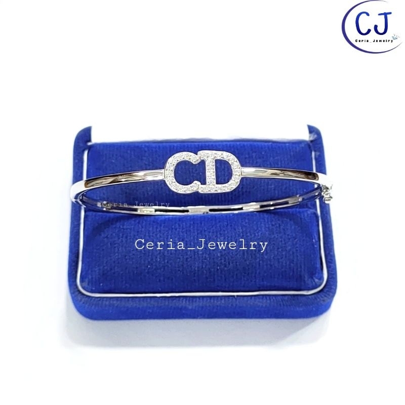 Gelang model Bangle Permata perak asli 925 lapis emas putih