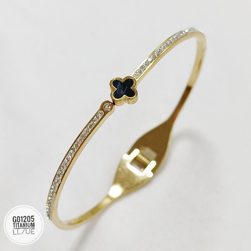 Video perkenalan produk Gelang titanium bangle clover gold G01205. Sumber: Shopee.