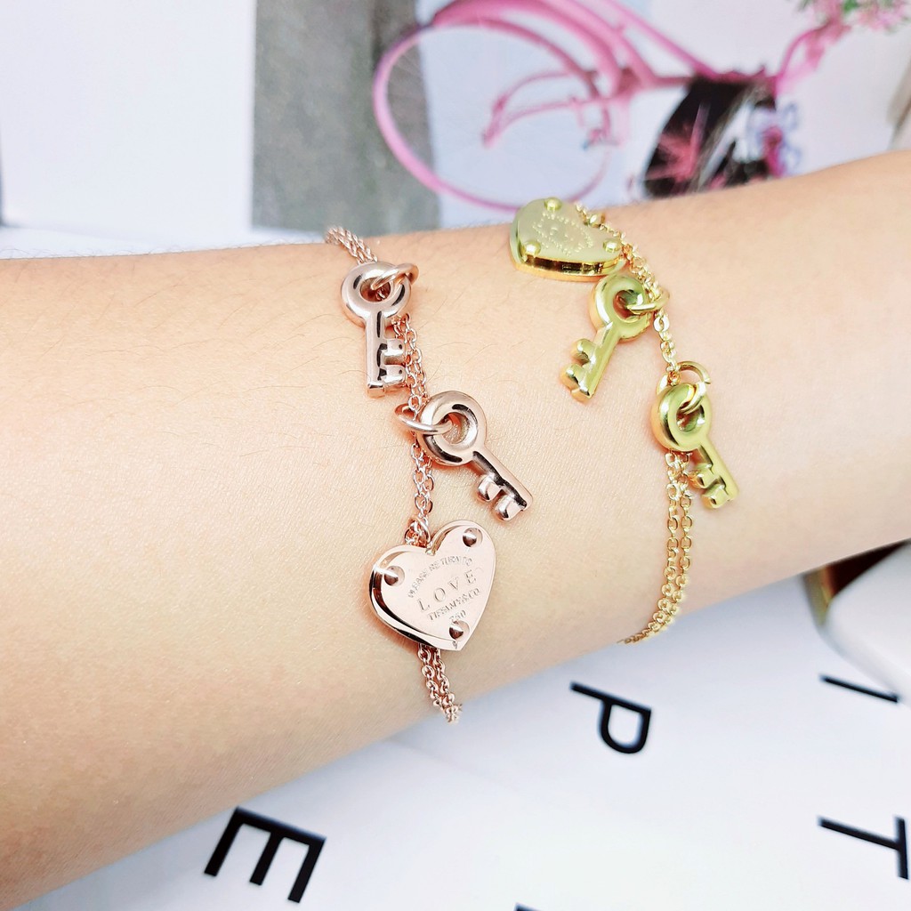 Detail Gelang Titanium Korea Kdrama Import Kunci Hati Rose Gold - BB597