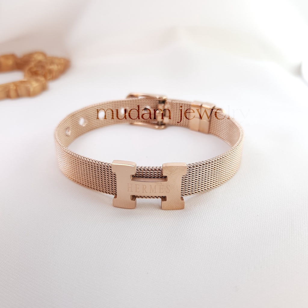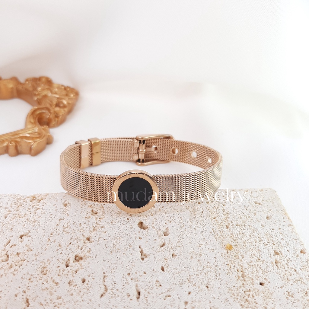 Detail Gelang Titanium L*, H dan Blgr Model Tali Jam Warna Hitam dan Rosegold
