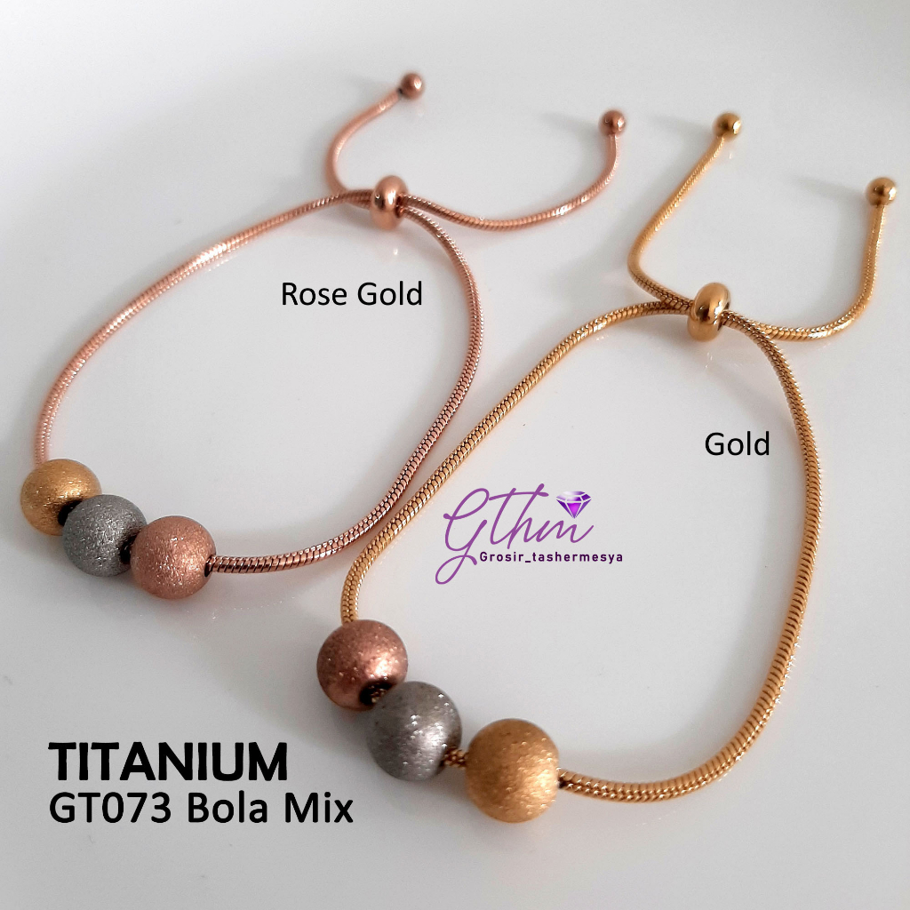 Detail Gelang Titanium Serut Bola Kombinasi Anti Karat Perhiasan fashion Import Premium gt073