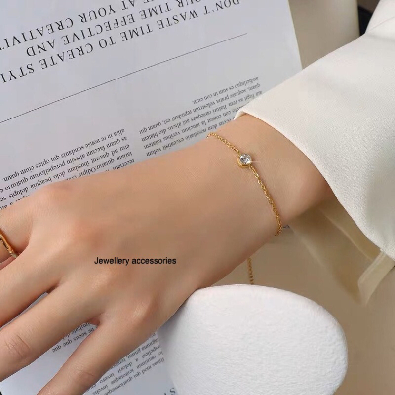 Detail Gelang Titanium Single Diamond Simple Elegan Korea Fashion Style