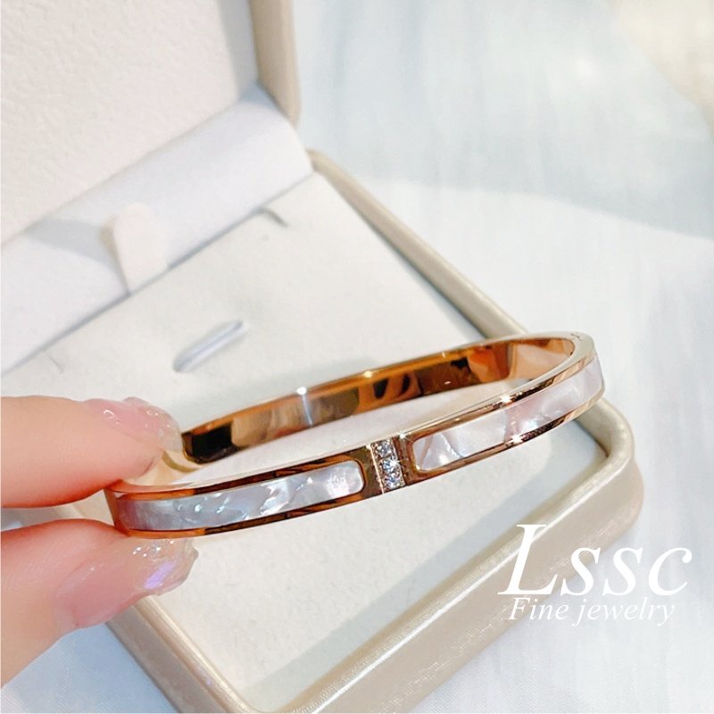 Gelang Titanium Wanita Anti Karat Berlian Mewah Shell Elegan Fashion Korea Emas 18K Bangle Aksesoris Perhiasan
