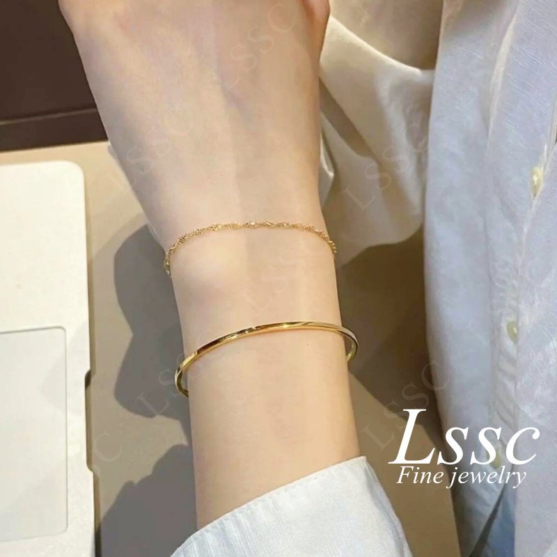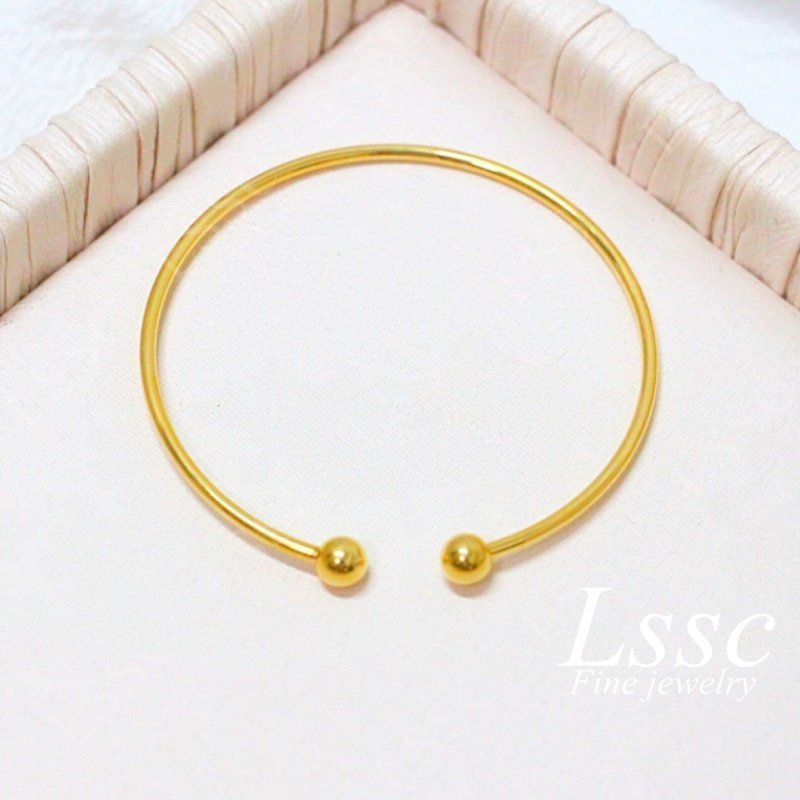 Detail Gelang Titanium Wanita Anti Karat Bola Keberuntungan Emas 18K Elegan Fashion Korea Bangle Aksesoris Perhiasan