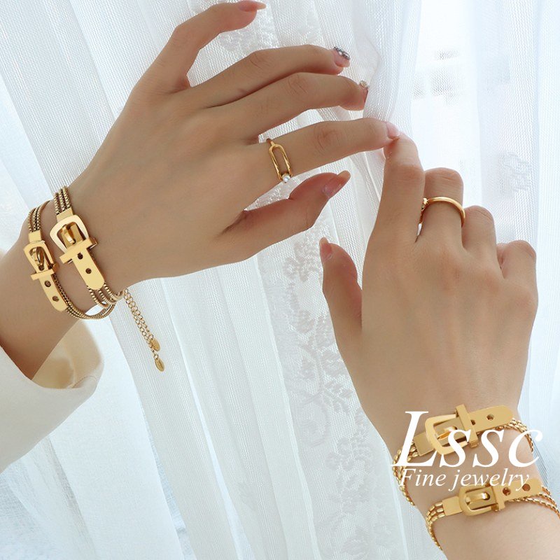 Detail Gelang Titanium Wanita Anti Karat Gesper Sabuk Emas 18K Elegan Fashion Cantik Aksesoris Perhiasan COD