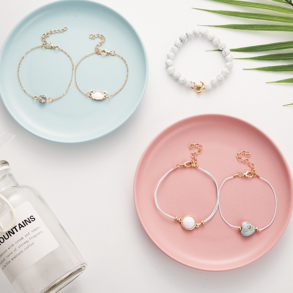 Aksesoris Fashion > Gelang Tangan & Bangle > Gelang Turquoise Bentuk Hati Kepiting | Set Lima Potong | Aksesoris Wanita | Sendok Garpu Bahan Stainless Steel