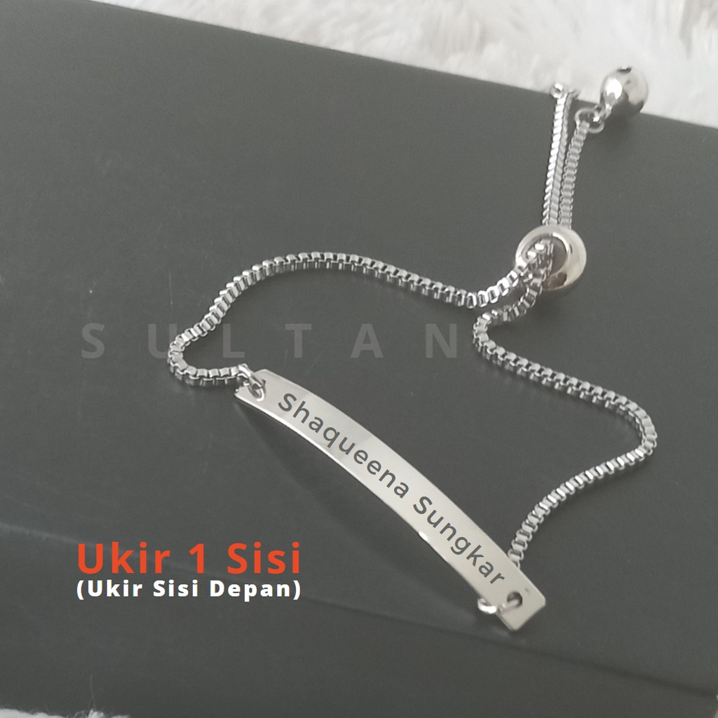 Detail Gelang Ukir Nama Model Serur Plat Monel Asli Anti Karat Pereda Demam
