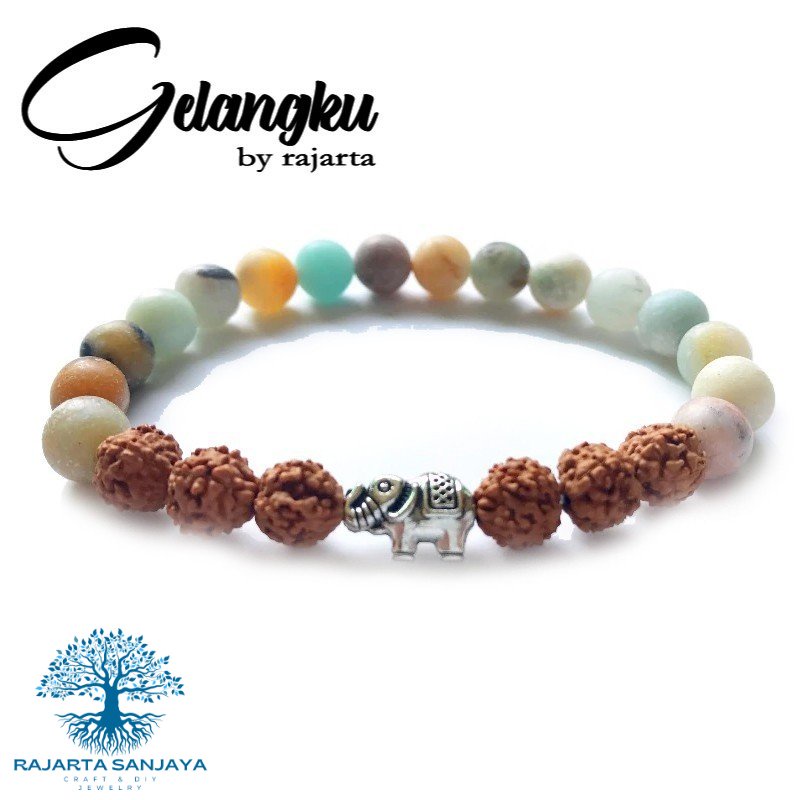 Detail Gelang Vintage Matte Amazonite Bracelet Nature Rudraksha Bracelet Elephant