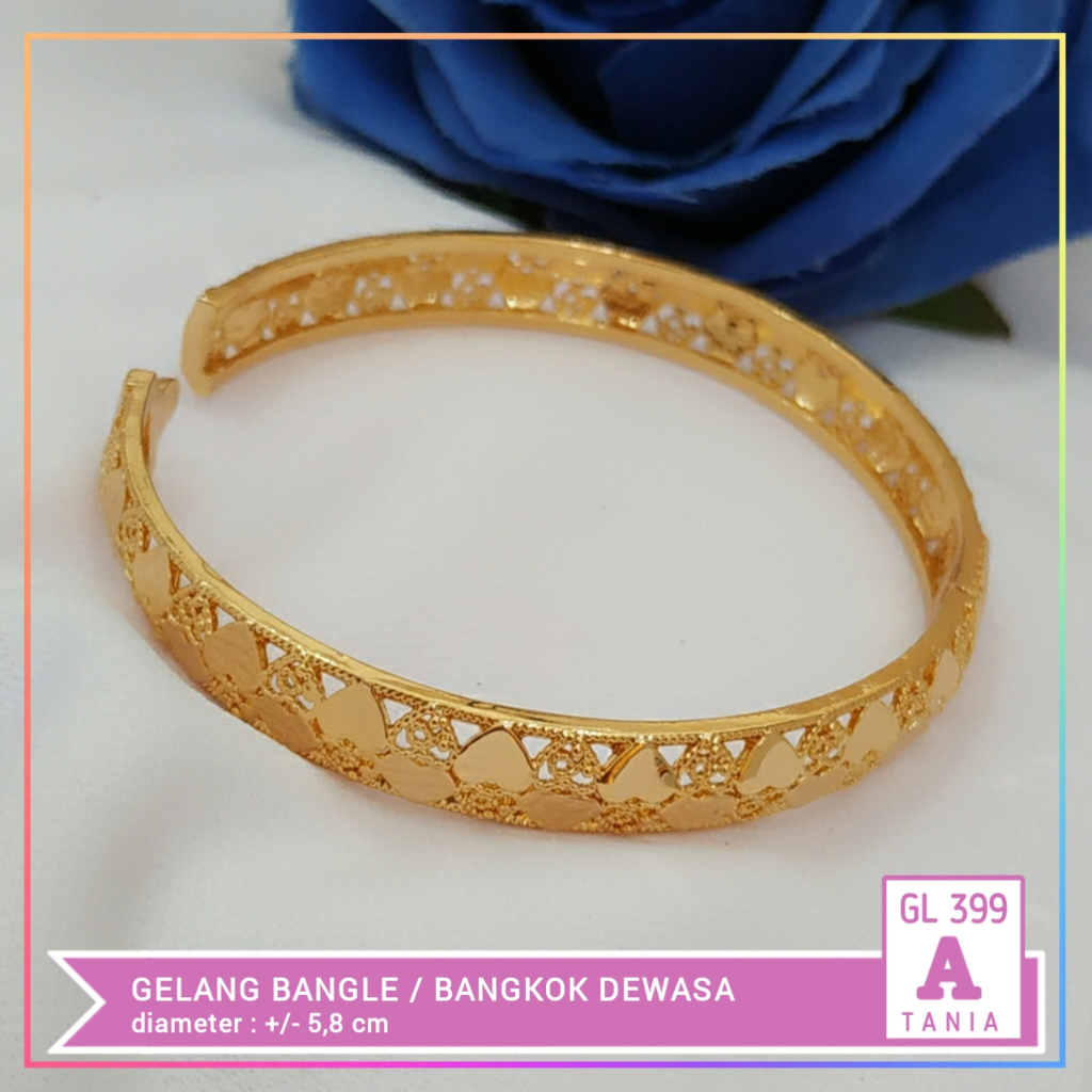 Detail Gelang xuping gelang bangle dewasa love ukir polos perhiasan lapis emas gold GL 399