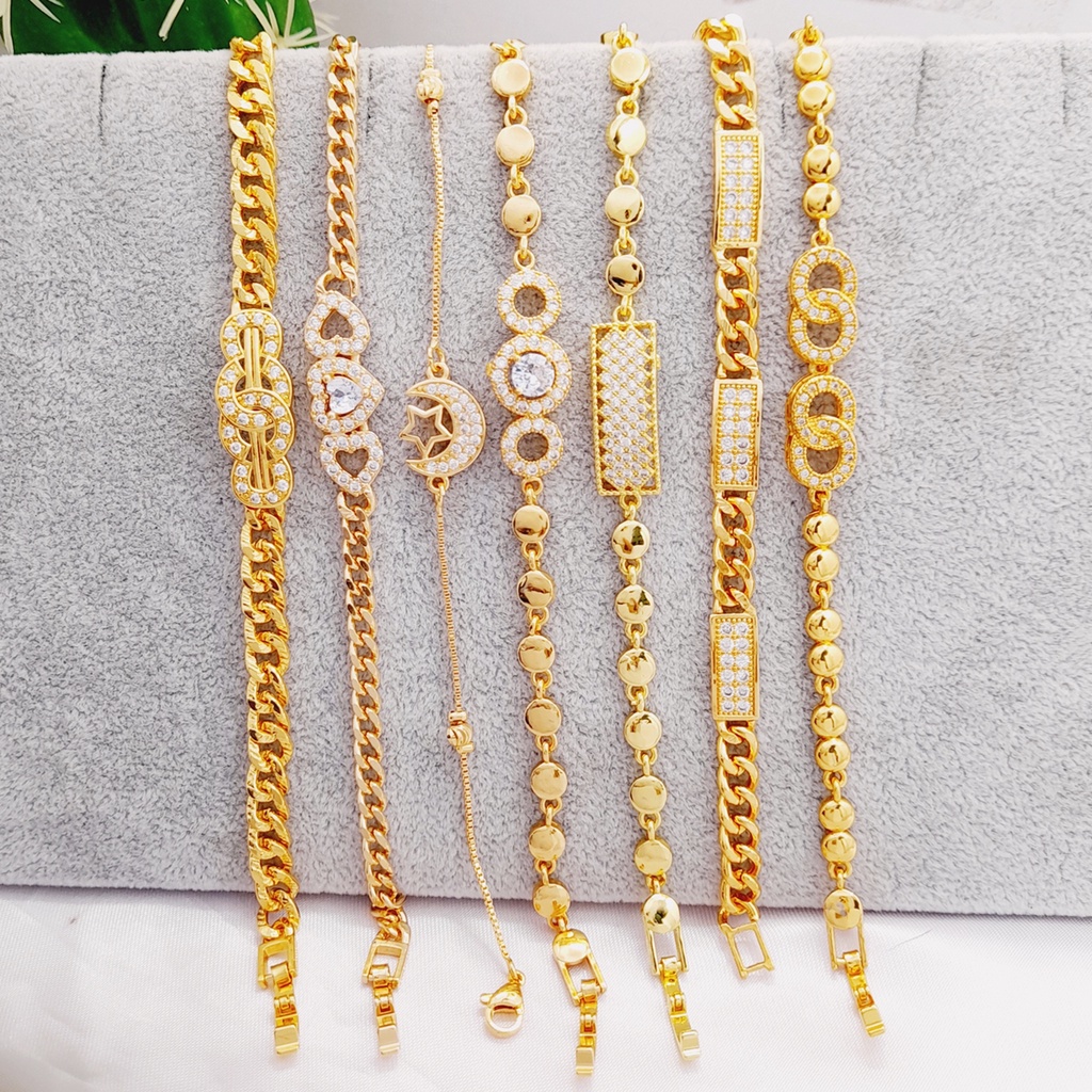 Detail Gelang Tangan Plat Rantai Mata Xuping Wanita Warna Emas Gold - BB138