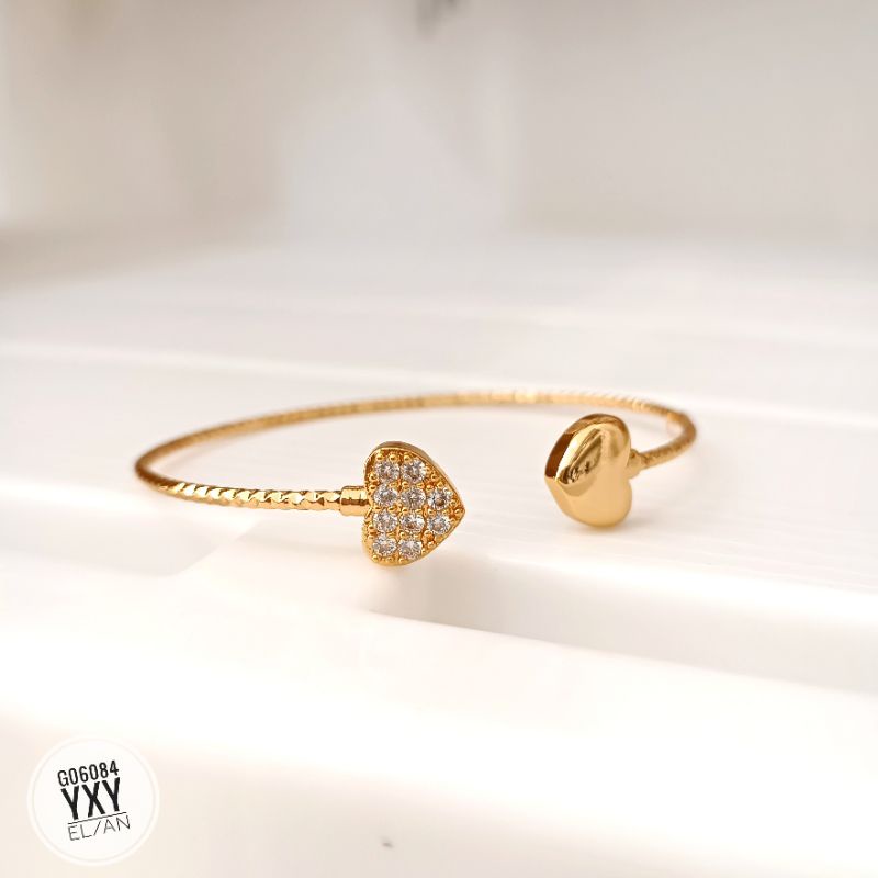 Detail Gelang Yaxiya Bangle Love Zircon Fleksible G06084