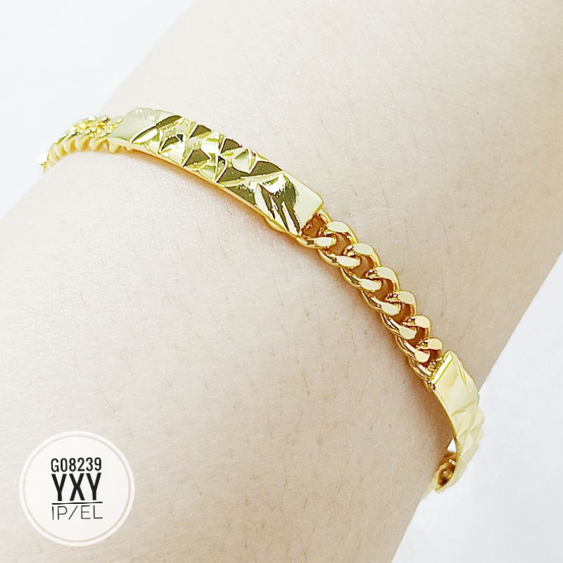 Detail Gelang Yaxiya rantai plat ukir warna 24k G08239