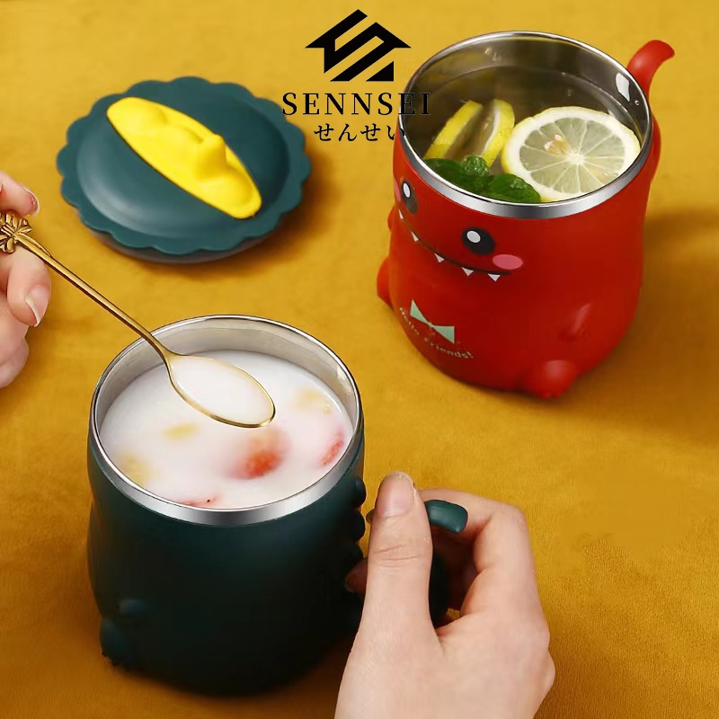 Detail Gelas Anak Mug Dino 3D Lucu Bentuk Dinosaurus Free Sedotan Anti Tumpah Steinless Stell 929 Kapasitas 320ml