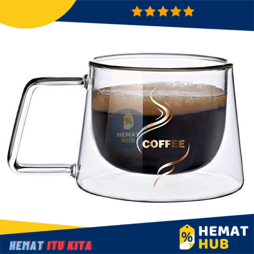 HEMATHUB - Gelas Cangkir Mug Cup Tahan Anti Panas Double Layer Wall Kopi Espresso Coffee Susu Kaca