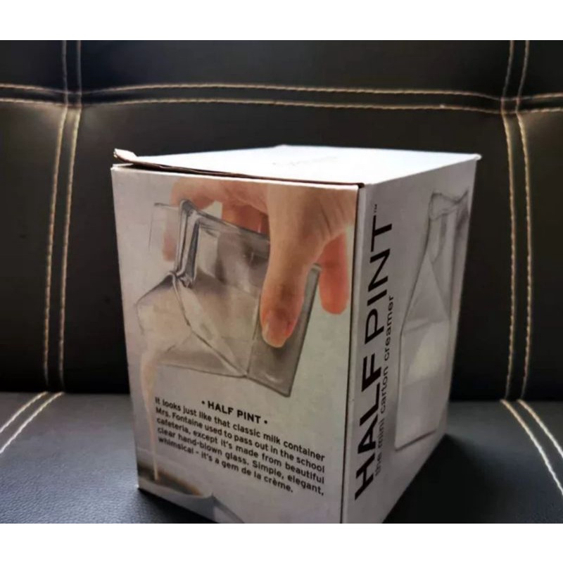 Bila anda sedang memikirkan sebuah hadiah yang unik, spesial, indah dan bermutu, pilihanmu tidak mungkin tidak ini: Sebuah gelas kaca halfpint yang meniru bentuk kotak kertas susu halfpint.