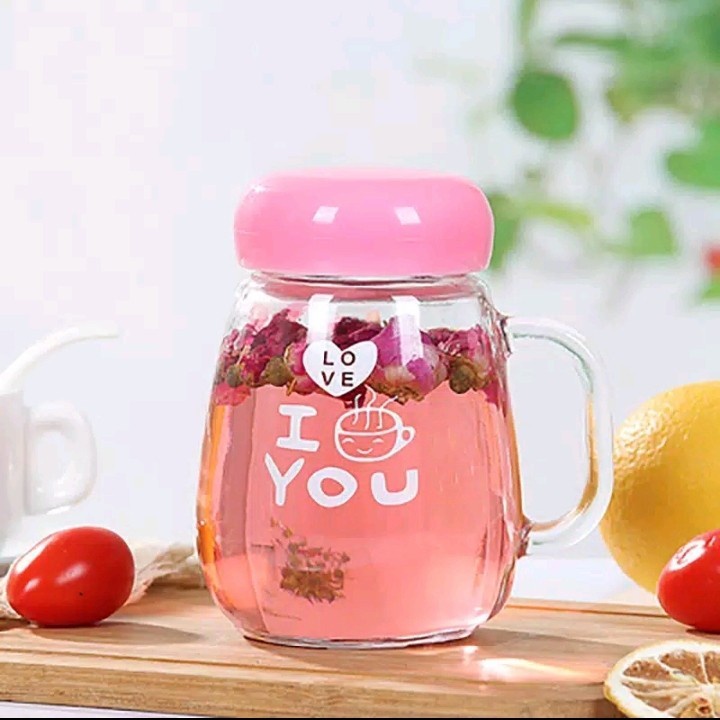 Botol minum ini unik loh, dalamnya terbuat dari kaca, luarnya yang ada gambar kartun itu lapisan dari bahan plastik dan fungsinya sebagai penahan panas atau dingin minuman.